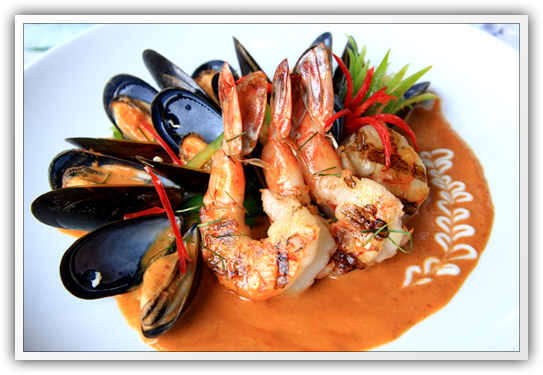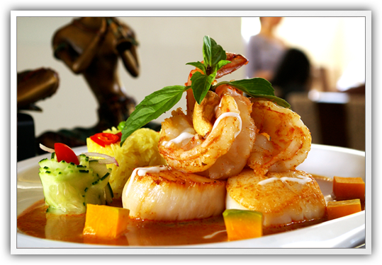 | Kung Yang Panang | Grilled skewered jumbo prawns, sea scallops, pineapple and cherry tomatos in panang curry servecd with green beans and calamari curry rice | 28 |