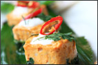 | Poh Pia Sod | Fresh rice paper rolls stuffed with cellophane noodles, cilantro, basil, cucumber, celery, carrots and romaine served with sweet yellow pepper dipping sauce | 9 |